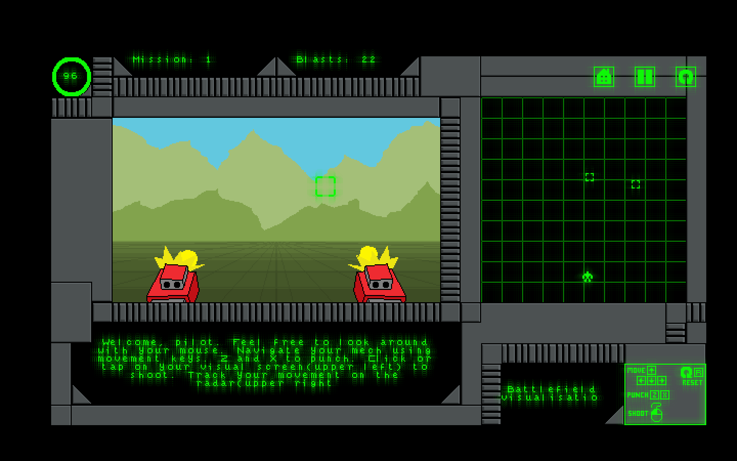 Arrow keys/ASDW - Move your mech location on the radar